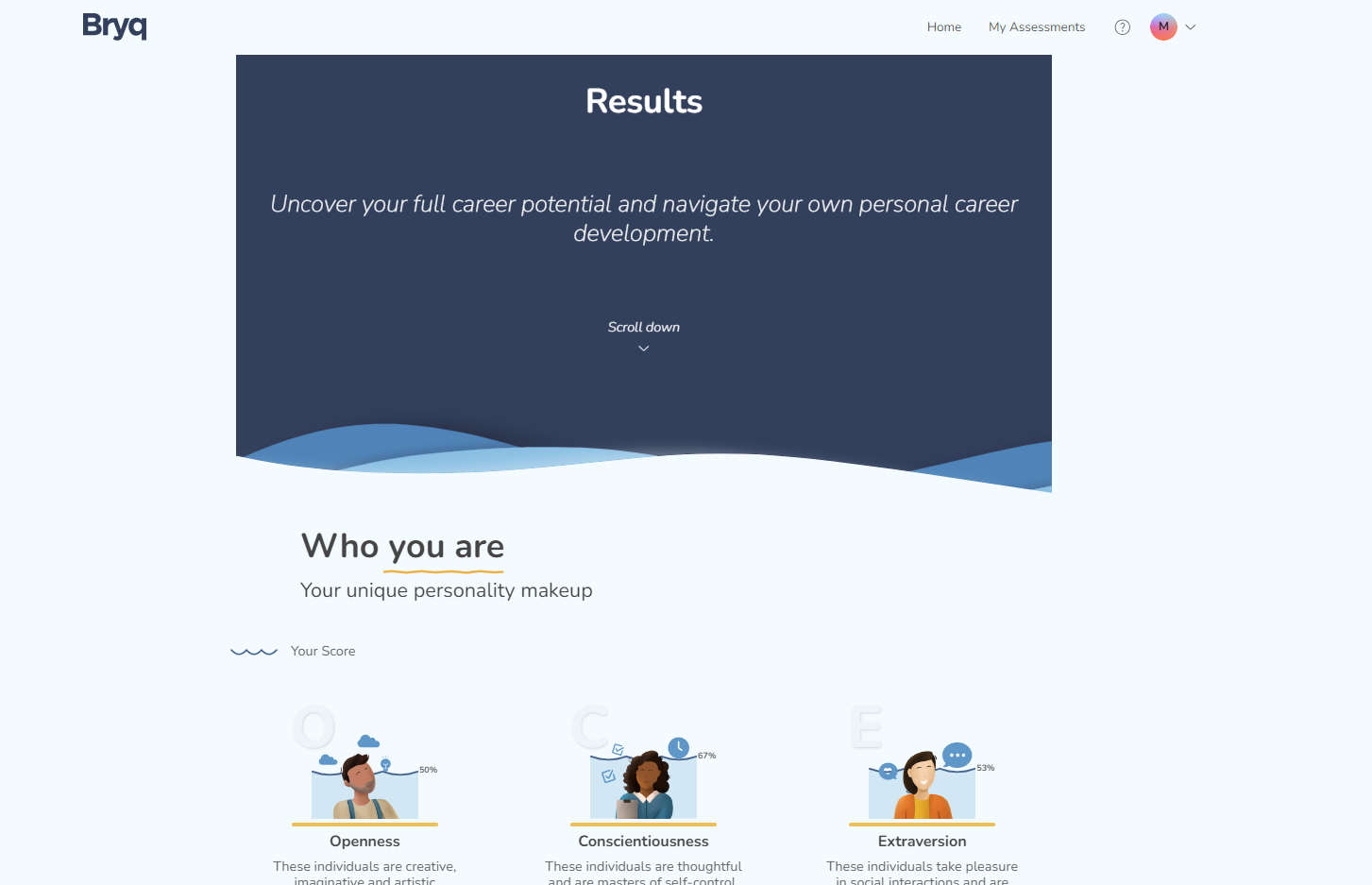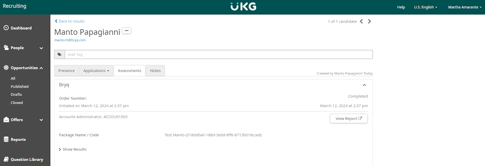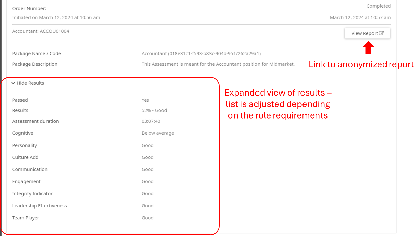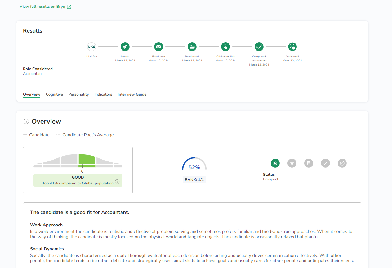The View Report link redirects to an external link provided by Bryq to the anonymized results of the candidate.