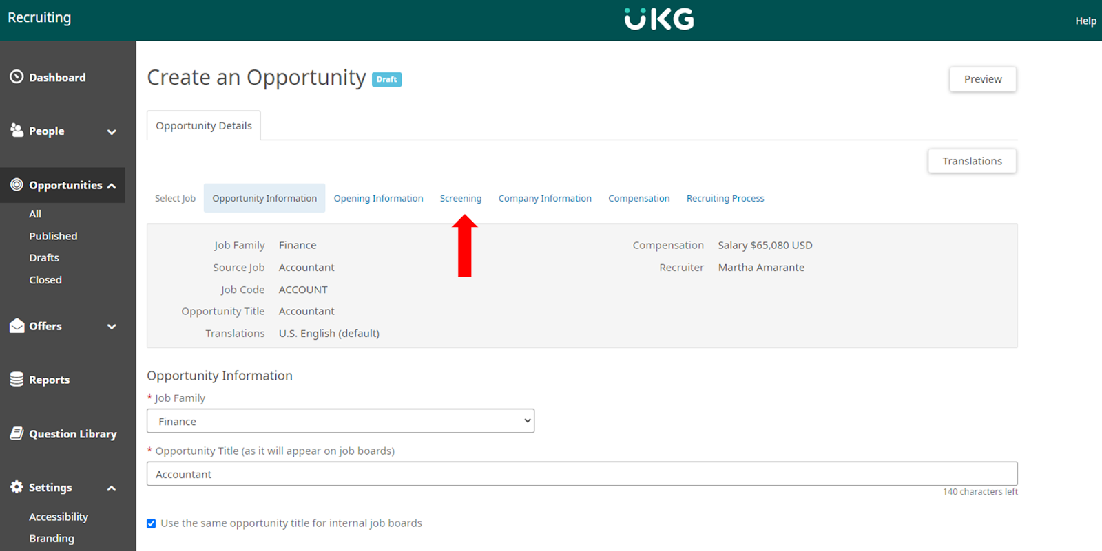 Perform edits to the Opportunity Information at will and then Proceed to the Screening section.