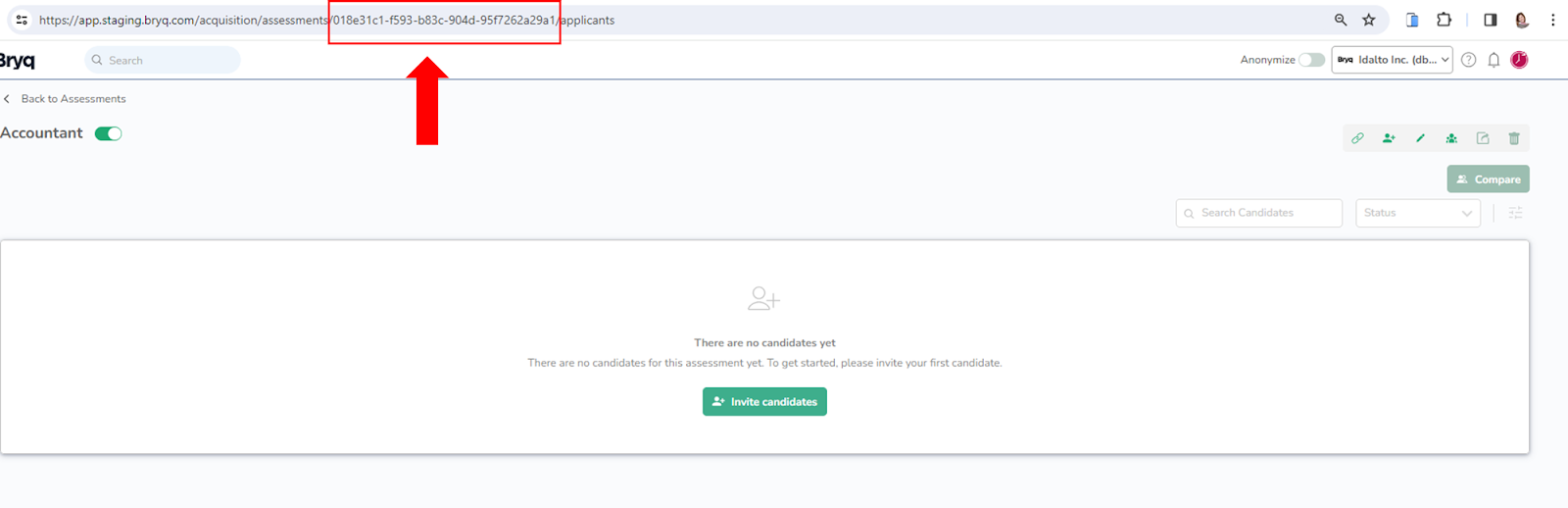 The Recruiter saves the Assessment for that role and copies the Assessment ID from the URL.