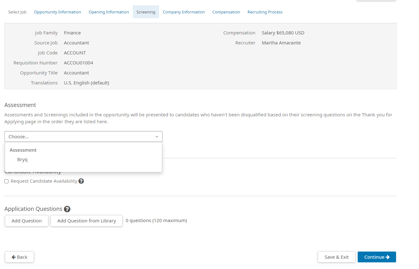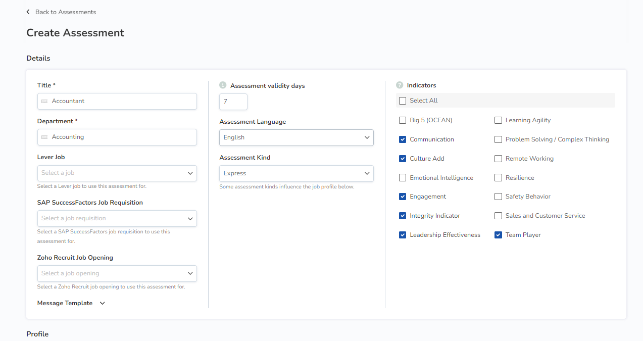 In Bryq, the recruiter creates an assessment for a role i.e. Accountant.