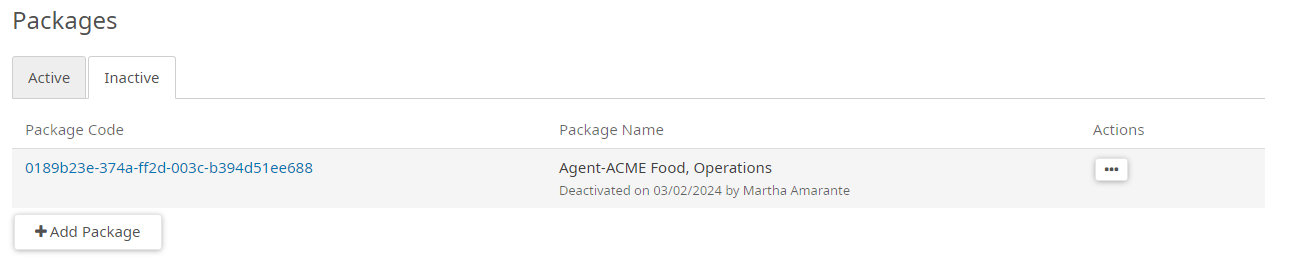 Note: In case you want to deactivate an assessment package you can click on the Actions icon and click Deactivate. Then the Package will appear in the Inactive tab.