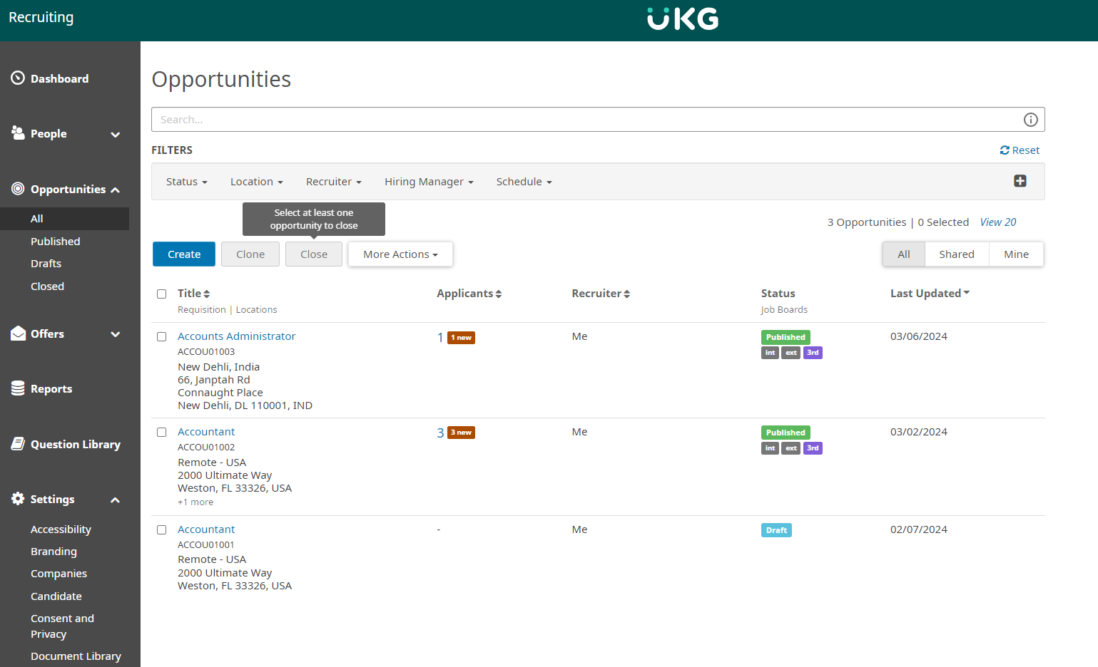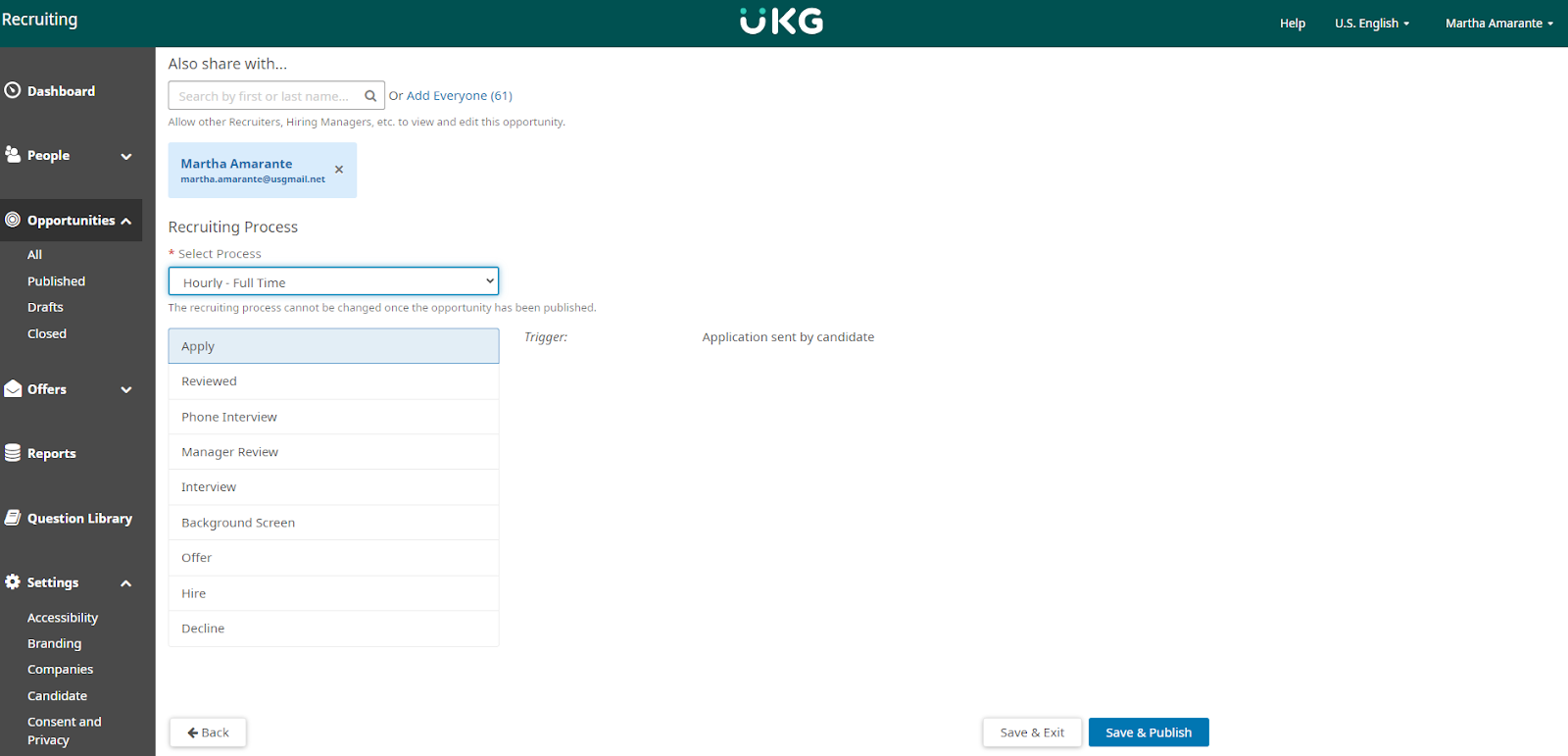 Once the Integration is enabled, Recruiters may start using Bryq in their recruiting process in UKG.