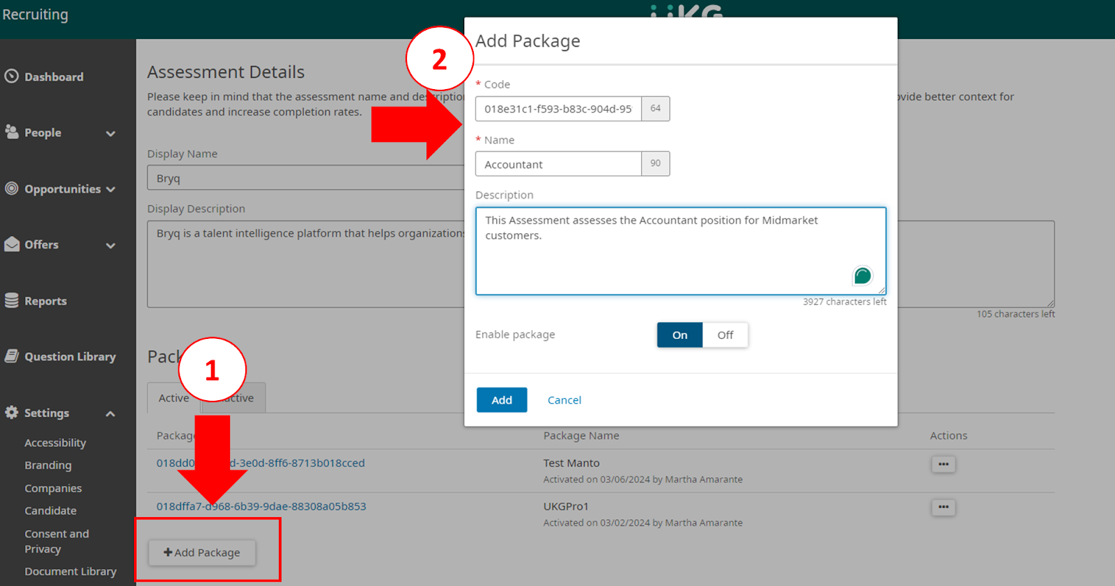 Once you are done adding the package(s) don’t forget to click Save at the bottom of the Assessment details page to verify that the changes have been saved.