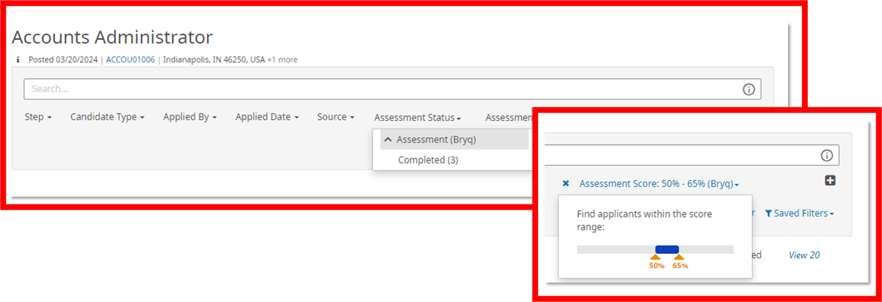 💡 In the Applicant view you may also want to use the Assessment Status and/or the Assessment Score to easier filter and find your ideal candidates: